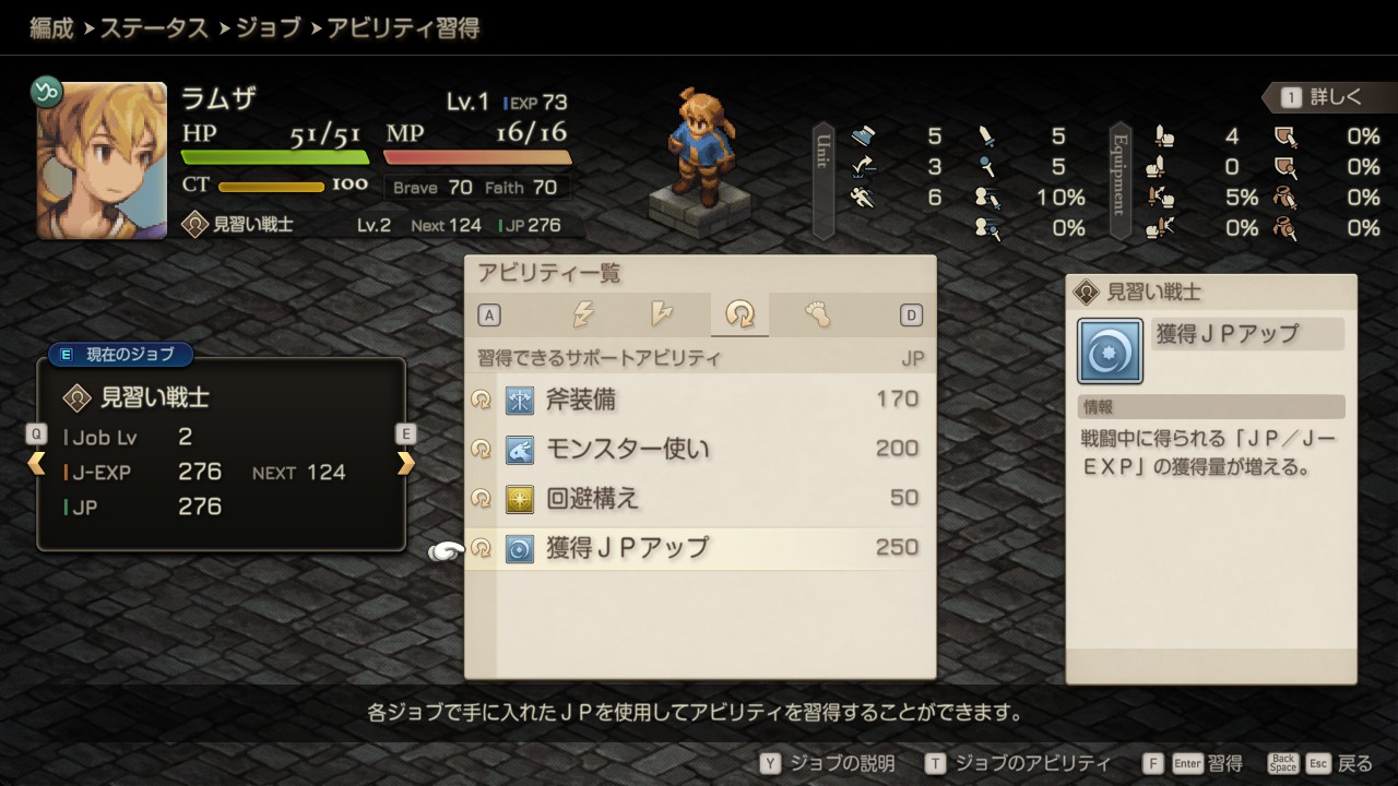 あとはPT内で同一アビリティのセット禁止、寄り道なし、露骨な遅延でJP稼ぎ禁止くらいのゆるめの縛りで色々試してみるか。